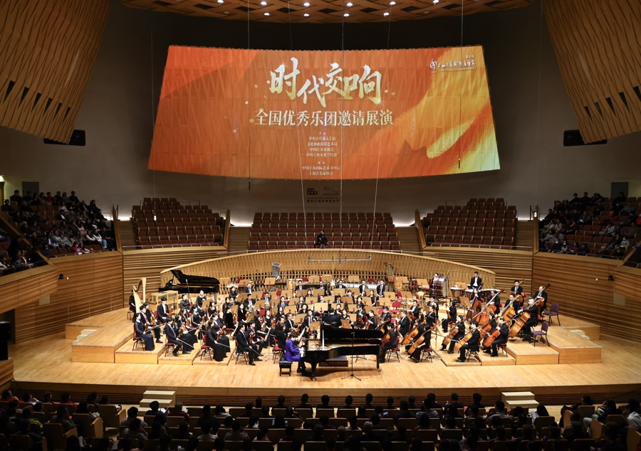 4月12日晚,上海交响乐团在青年指挥张橹执棒下,演绎管弦乐序曲《红旗颂》、钢琴协奏曲《黄河》及2022年委约创作的交响组曲《我们的世界》,拉开“时代交响——全国优秀乐团邀请展演”帷幕。