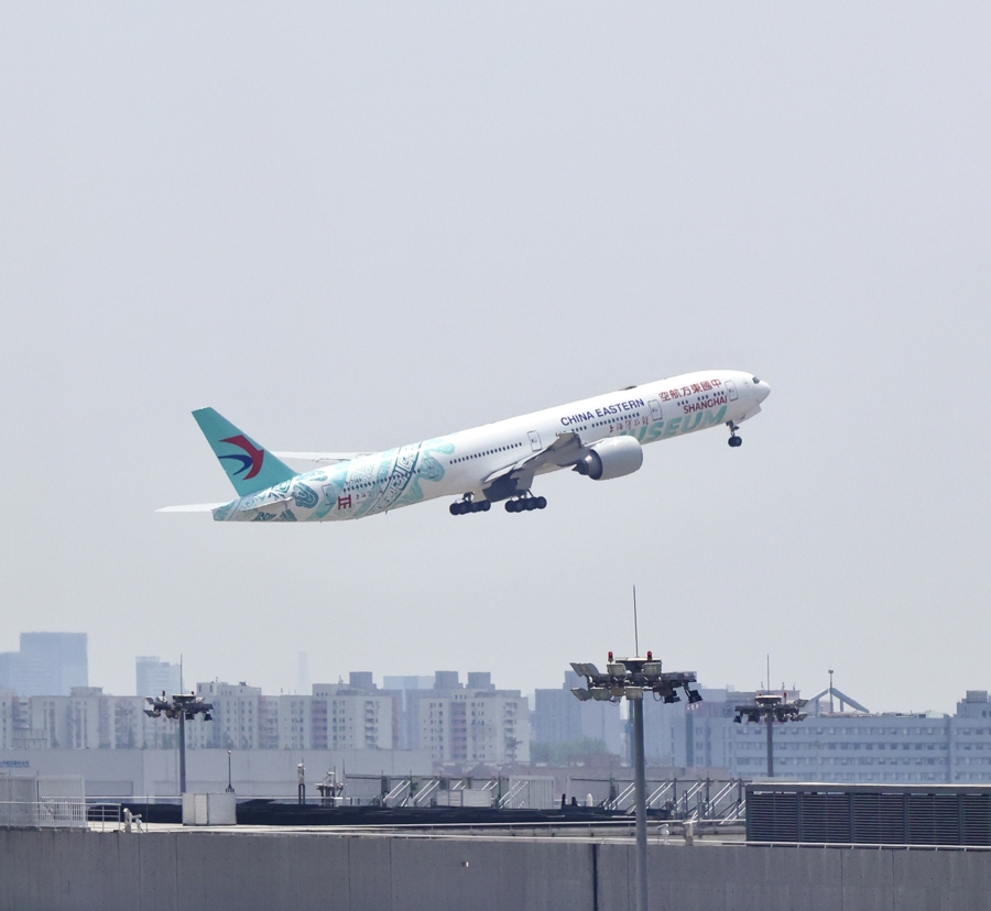 4月30日11时11分,“上博号”彩绘大飞机在揭幕仪式后执飞北京,这是世界首个飞越全球的“空中博物馆”。