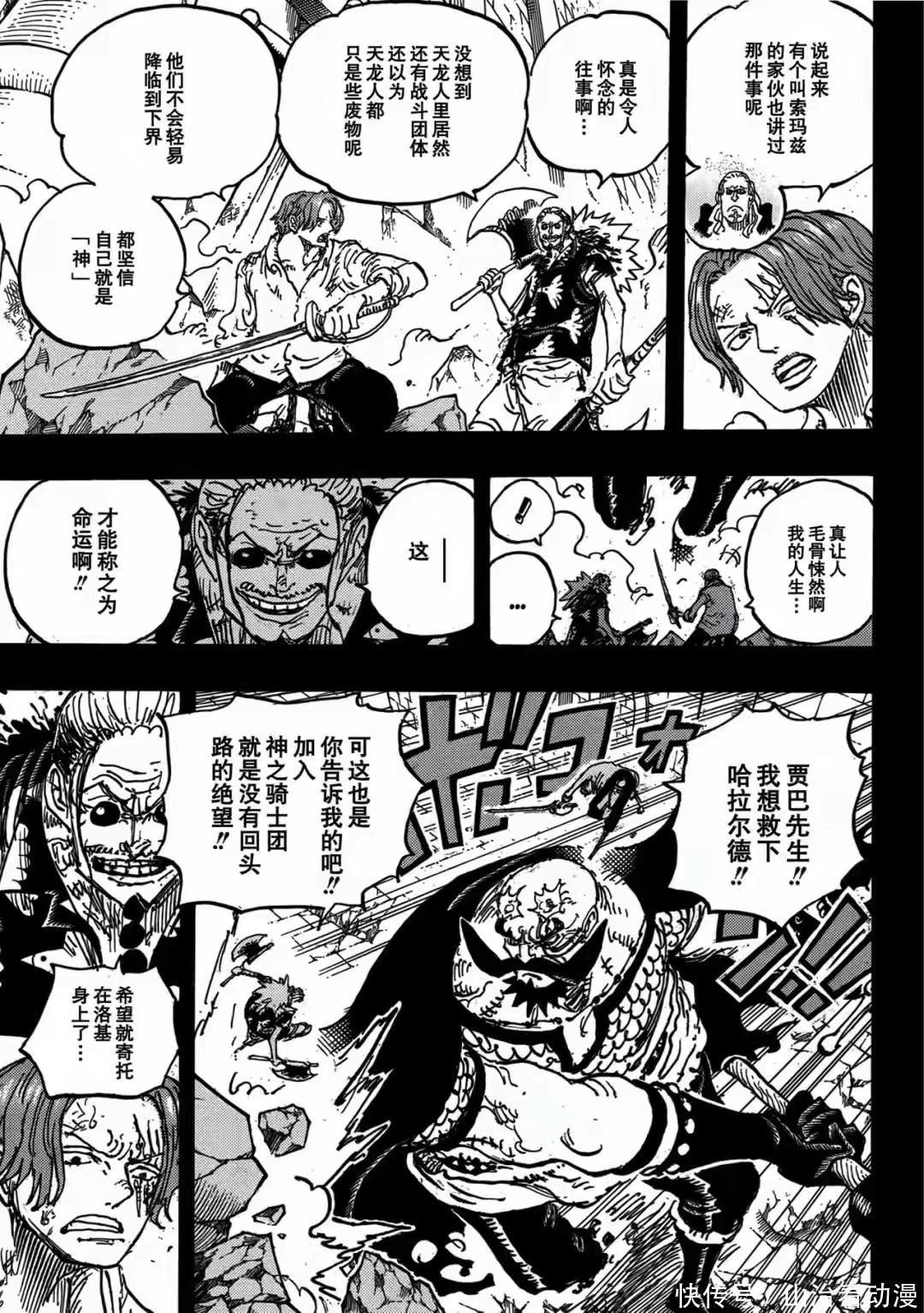 海贼王漫画剧情中,巨人族大战进入白热化阶段,草帽一伙和神之骑士团交战,娜美和乌索普等人营救孩子,他们和神之骑士团发生激战。草帽一伙不敌神之骑士团,娜美和乌索普,罗宾等人都被神之骑士团活捉了,贾巴也被军子打落冥界差点领盒饭。